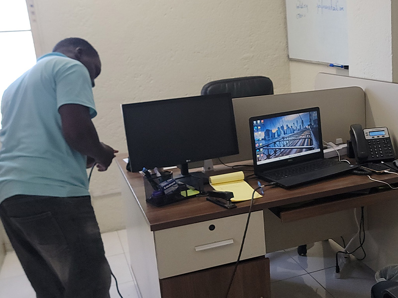 Stage informatique en Haïti chez LJ TechHub : réparation laptop, dépannage imprimante, installation réseau et développement web en pratique